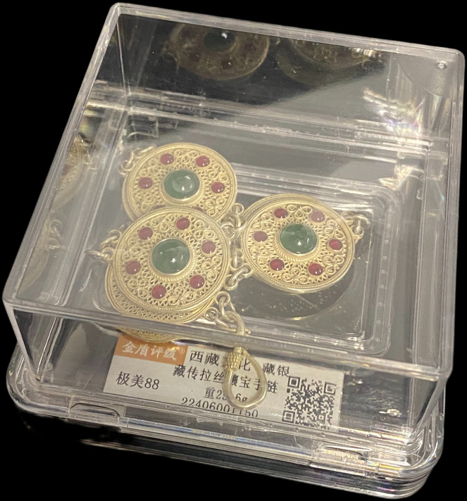 ND 西藏文化藏銀 藏傳拉絲鑲寶手鏈(藏銀) 金盾評級 極美88 編號:22406001150[非公博評級,自行判斷,售後不退]