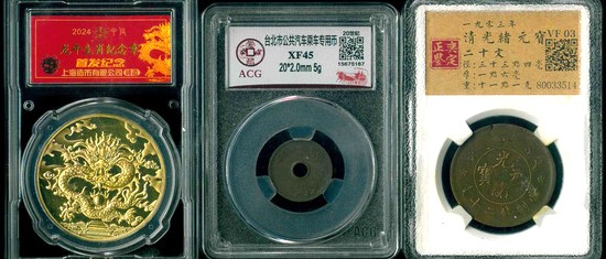 1903/20世紀/2024 清-光緒元寶20文/台北市公共汽車乘車專用幣/龍年生肖章 正奕 VF03/ACG XF45 編號:80033514…(共3枚)[非公博評級,自行判斷,售後不退]