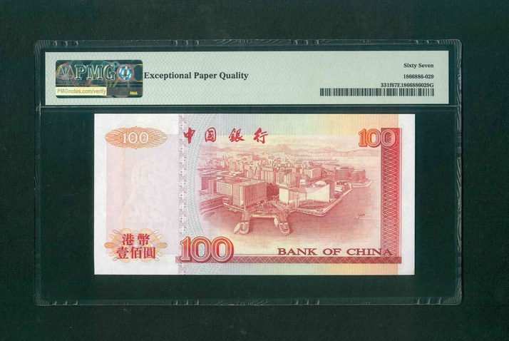 2000 香港中國銀行$100 PMG 67 EPQ 編號: BS385067