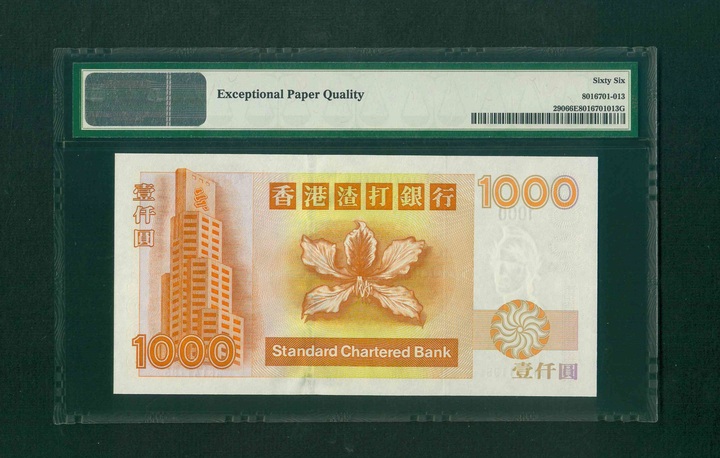 2002 香港渣打銀行$1000 PMG 66 EPQ 編號: AF141195(頂級雪白)