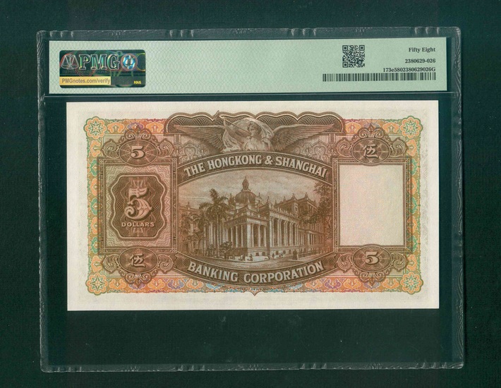 1946 香港上海匯豐銀行$5 PMG 58 編號: S528364