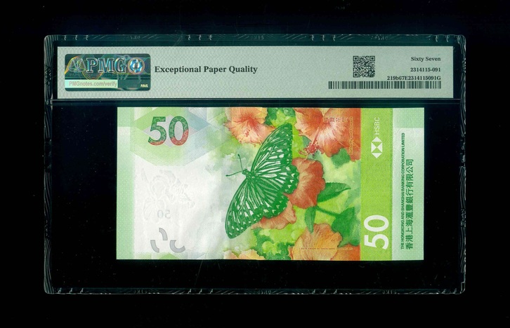 2020 香港上海滙豐銀行 $50 PMG 67 EPQ 編號:DS010001(二進制,頂級雪白)