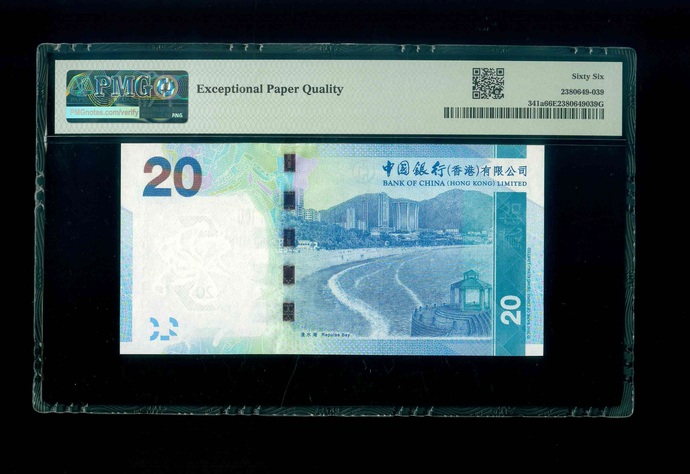 2010 香港中國銀行 $20 PMG 66 EPQ 編號:AA209899(頭版系列,頂級雪白)