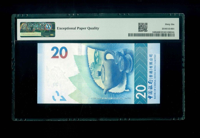 2021 香港中國銀行 $20 PMG 66 EPQ 編號:DP666333(雙豹子,頂級雪白)
