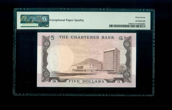 1975ND 香港渣打銀行 $5 PMG 67 EPQ 編號:F398574(頂級雪白)