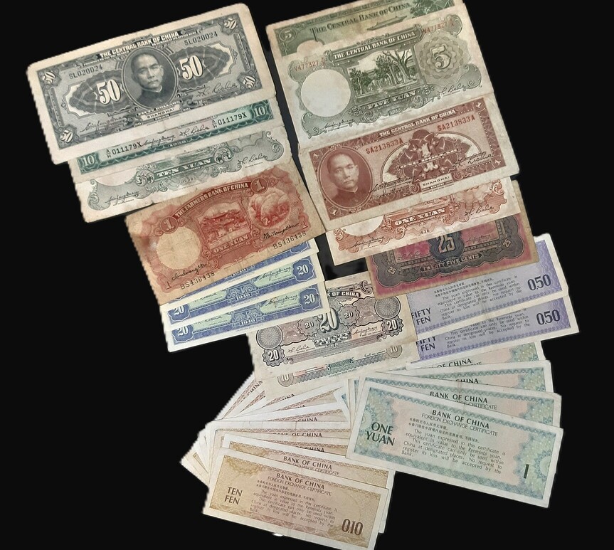 1928-1980 中國不同紙鈔 不同面值 Fine-VF 編號:ZM762866…(共30張)