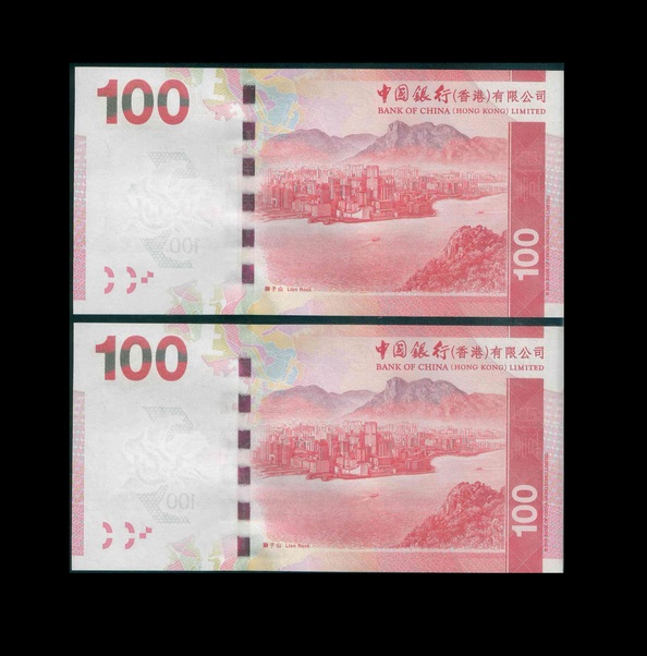 2010 香港中國銀行 $100 UNC 編號:AA722112-13(共2張,連號,頂級雪白)