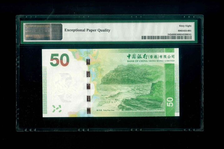 2014 香港中國銀行 $50 PMG 68 EPQ 編號:BK256888(豹子號,頂級雪白)