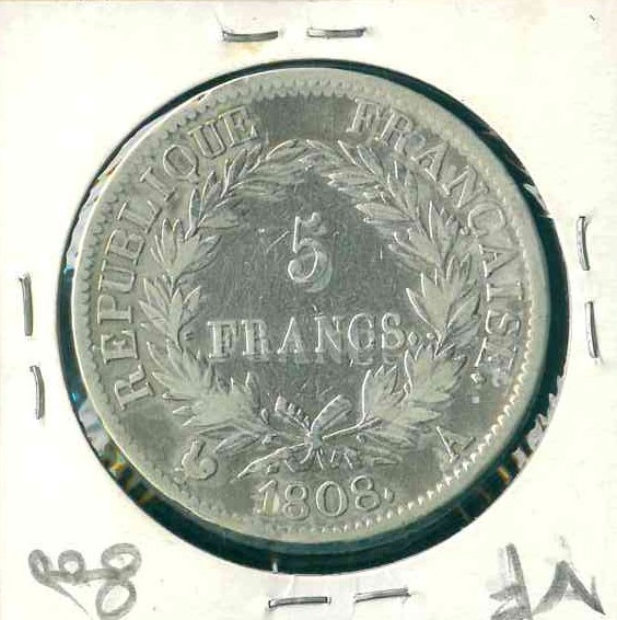1808A 法國 5 Francs VF 編號:NIL