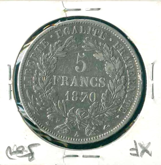 1870A 法國 5 Francs XF 編號:NIL