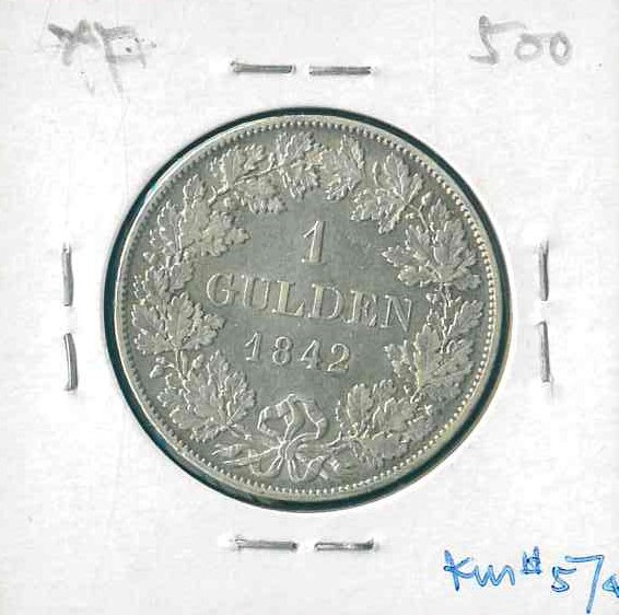1842 德國 Württemberg Gulden XF 編號: NIL