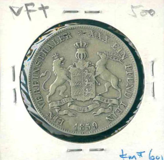 1859 德國 Württemberg Thaler VF+ 編號: NIL