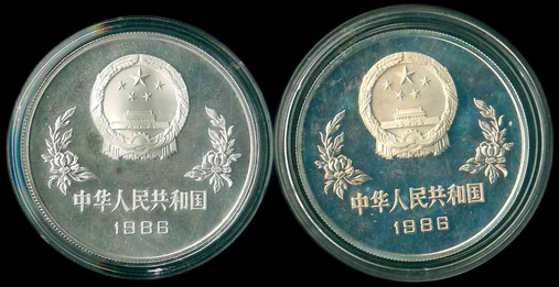 1986 中國銀幣 $5 (1988 世界盃足球2全) Proof 編號: NIL(共2枚)