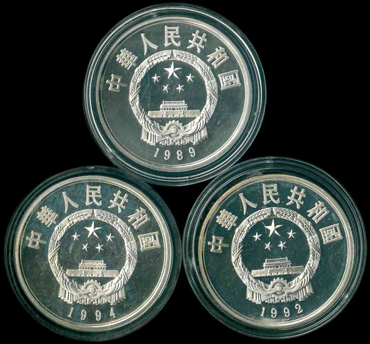 1989/92/94 中國銀幣 $10 (瀕臨絶種野生動物保育) Proof 編號: NIL(共3枚)