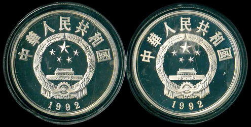 1992 中國銀幣 $5 (古代歷史人物-蕭焯/花木蘭) Proof 編號: NIL(共2枚)