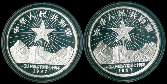 1997 中國銀幣 $10 (解放軍建軍70周年-2全 2oz Ag) Proof 編號: NIL(共2枚)