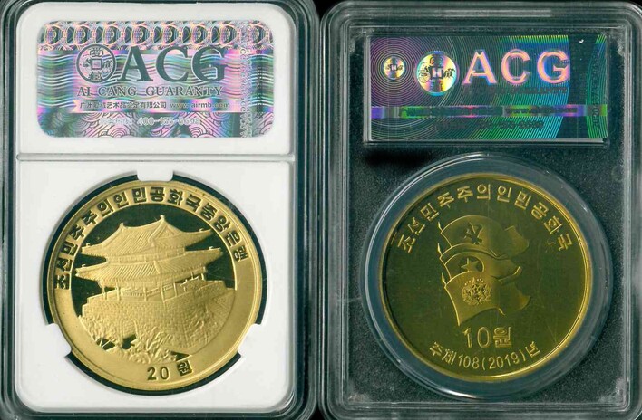 2005/2019 朝鮮八萬大藏經 20 Won/ 立足本國放眼世界銅幣-黃銅 10 Won ACG PF69 編號:10998898…(共2枚)[非公博評級,自行判斷,售後不退]