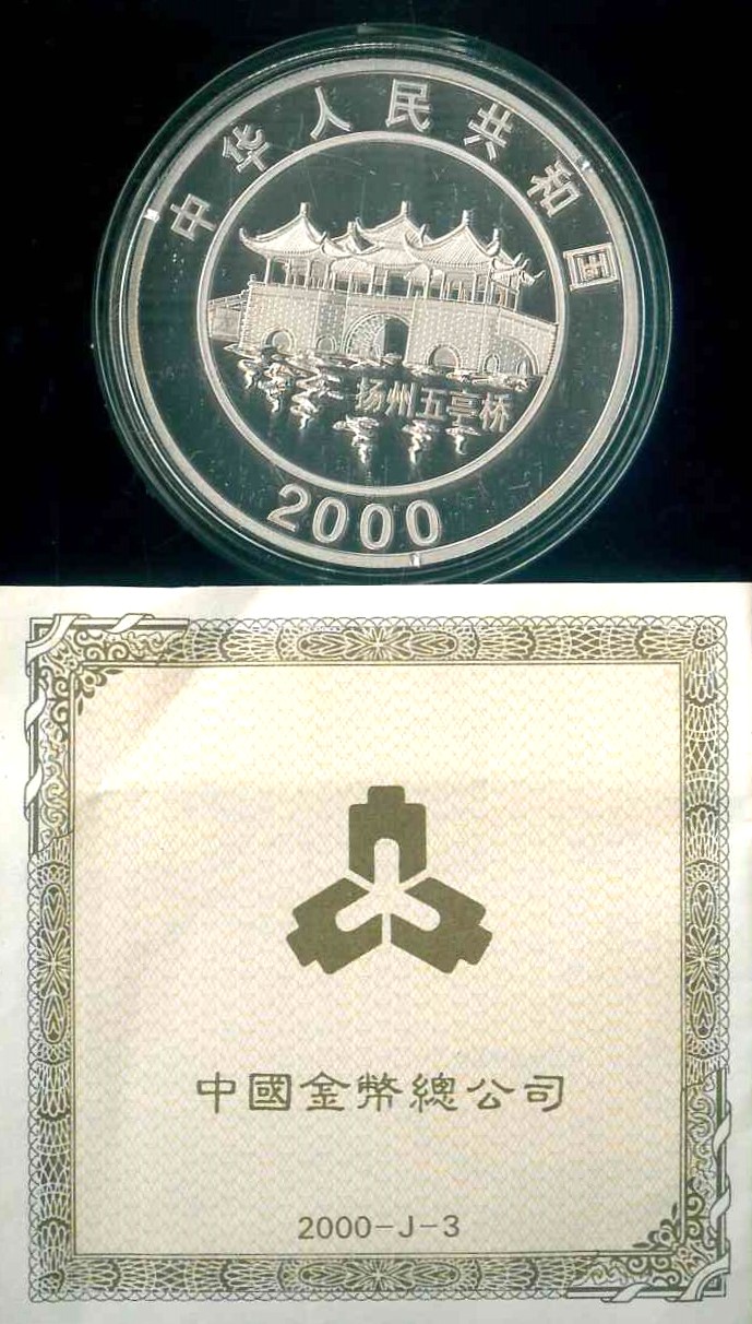 2000 中國龍年生肖彩銀幣 (揚洲五亭橋) $10 Proof 編號:NIL(証書)