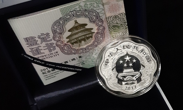 2017 中國雞年生肖花形銀幣 $10 (30g 99.9% Silver) Proof 編號:NIL(証書連盒)