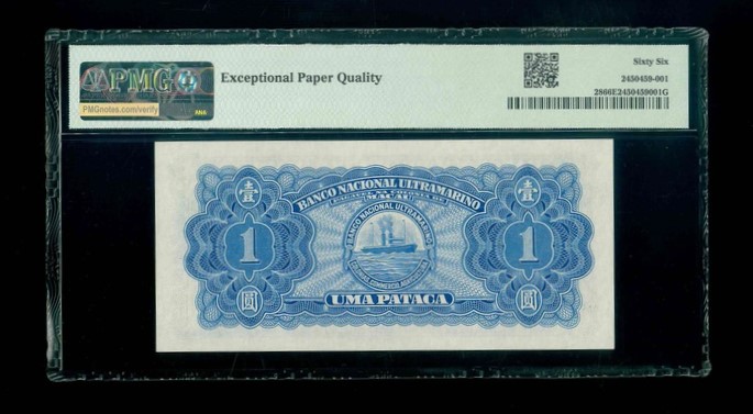 1945 澳門大西洋國海外滙理銀行 1 Pataca PMG 66 EPQ 編號:4359178(頂級雪白)
