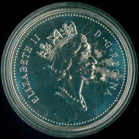 1990 加拿大銀幣 Dollar (紀念探險家亨利300週年) 品相如圖 編號:NIL