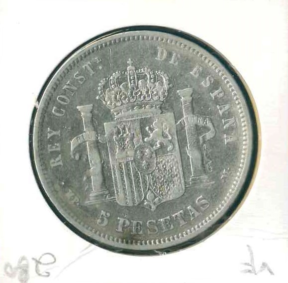1888 西班牙 5 Pesetas VF 編號:NIL