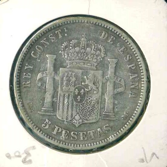 1891 西班牙 5 Pesetas VF 編號:NIL