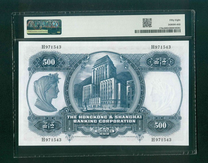 1968 香港上海滙豐銀行 $500 PMG 58 編號:H971543