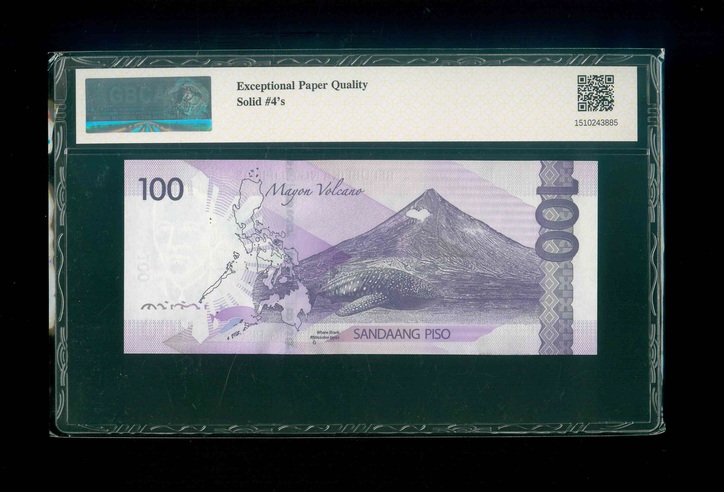 2022 菲律賓100 Piso GBCA 66 EPQ 編號: MW444444(全4,頂級雪白)