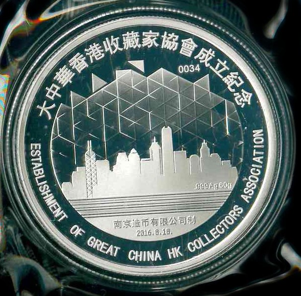 2016 大中華香港收藏家協會成立全新紀念銀章 (.999Ag 60g) 品相如圖 編號:NIL