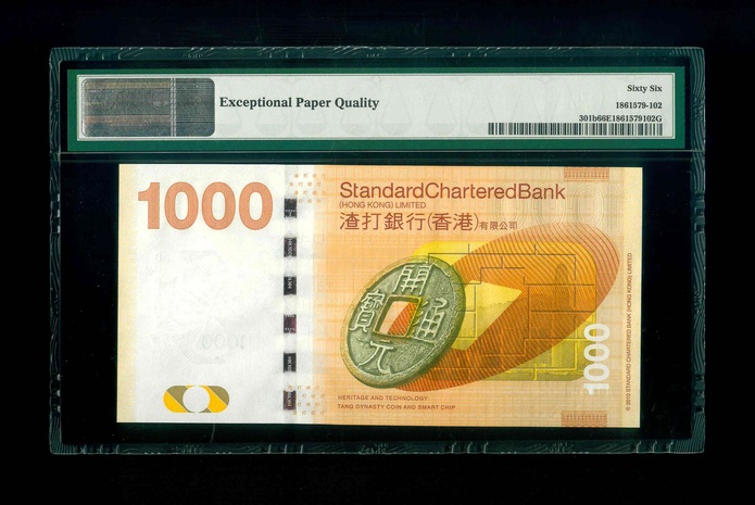 2012 香港渣打銀行$1000 PMG 66 EPQ 編號: BB846162(雙冠,頂級雪白)
