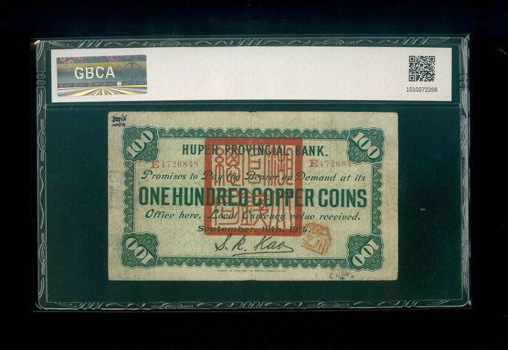 1914 湖北官錢局 銅元壹百枚 GBCA 30 編號: E4726848
