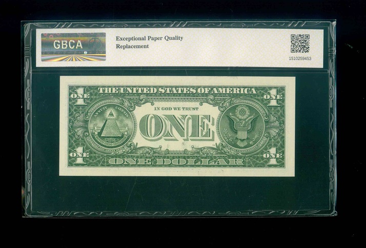 2017 美國$1 GBCA 66 EPQ 編號: F10132482*(補版系列,頂級雪白)