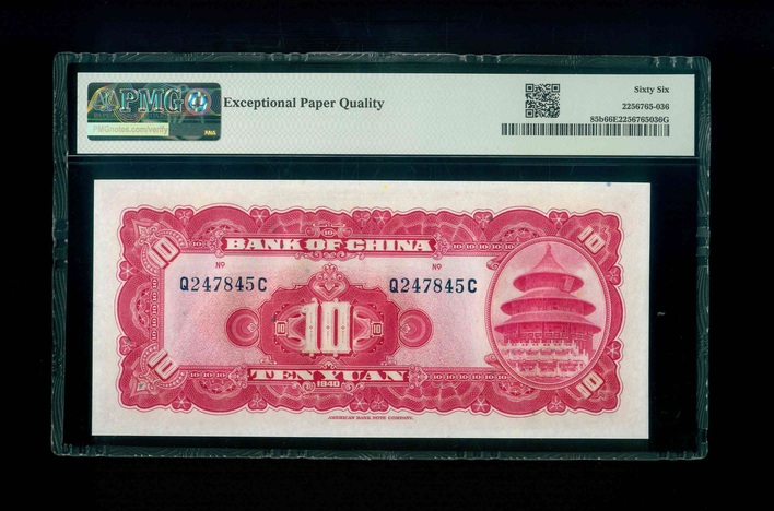 1940 中國銀行$10 PMG 66 EPQ 編號: Q247845C(頂級雪白)