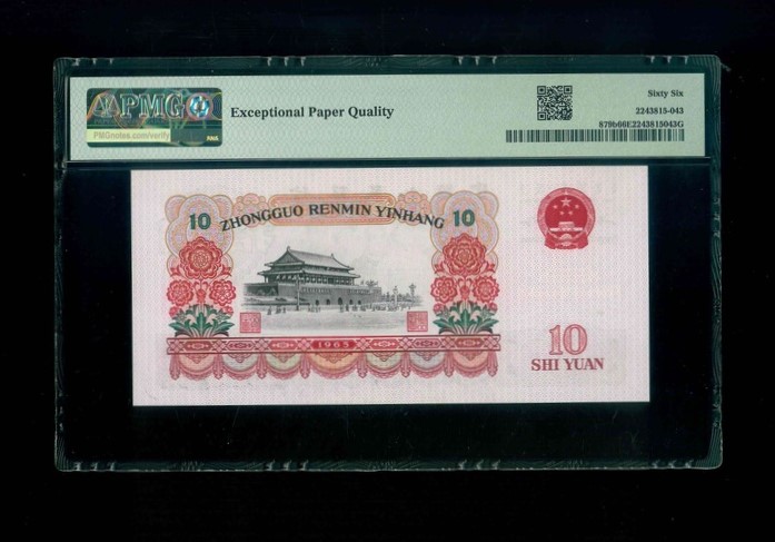 1965 中國人民銀行 $10 PMG 66 EPQ 編號:II IV 00972417(頂級雪白)