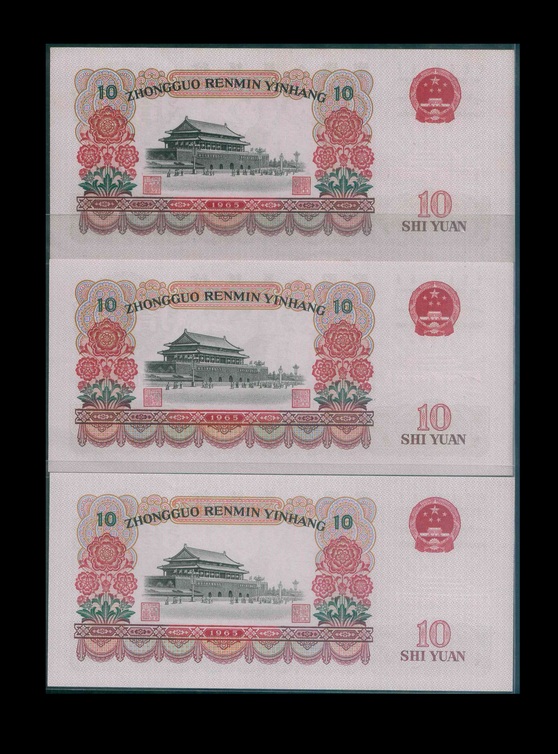 1965 中國人民銀行 $10 UNC 編號:IV III 44818668…(共3張)