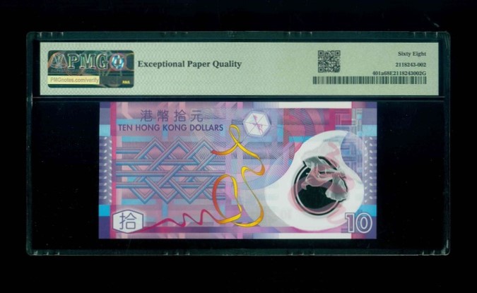 2007 香港特區政府 $10 PMG 68 EPQ 編號:AA161588(頭版88尾)