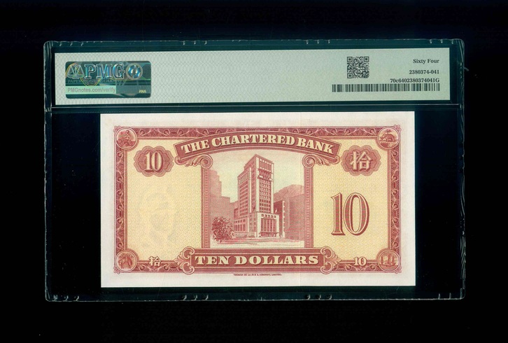 1962-70ND 香港渣打銀行 $10 PMG 64 編號:T/G 8550921(罕有米拿簽名)