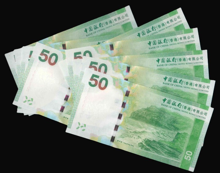 2010 香港中國銀行 $50 UNC 編號:AA799869-77(頭版9連號,頂級雪白)