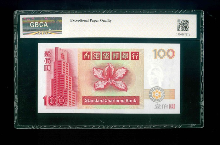 1994 香港渣打銀行 $100 GBCA 66 EPQ 編號:AT744913(頂級雪白)