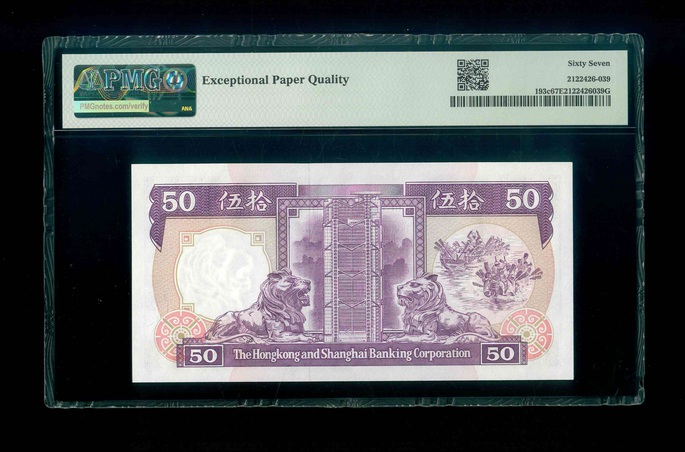 1992 香港上海滙豐銀行 $50 PMG 67 EPQ 編號:CA075058(頂級雪白)