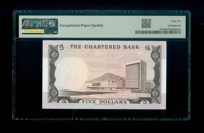 1975ND 香港渣打銀行 $5 PMG 66 EPQ 編號:R950487(頂級雪白)