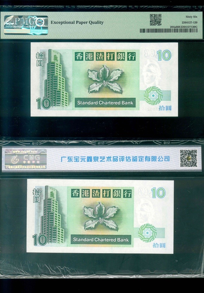 1993/1995 香港渣打銀行 $10 PMG 66 EPQ/CMG 69 EPQ 編號:A888296…(共2張)
