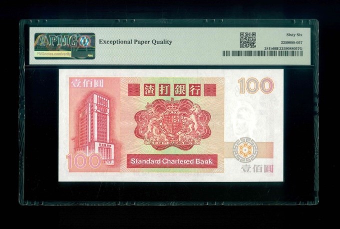 1988 香港渣打銀行 $100 PMG 66 EPQ 編號:AY677181