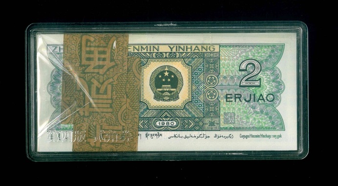 1980 中國人民銀行 2角 UNC 編號:HS73639201…(原裝百連,頂級雪白)