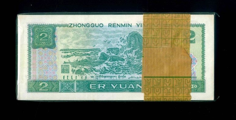 1990 中國人民銀行 2圓 UNC 編號:WD69536701…(標準百連,頂級雪白)