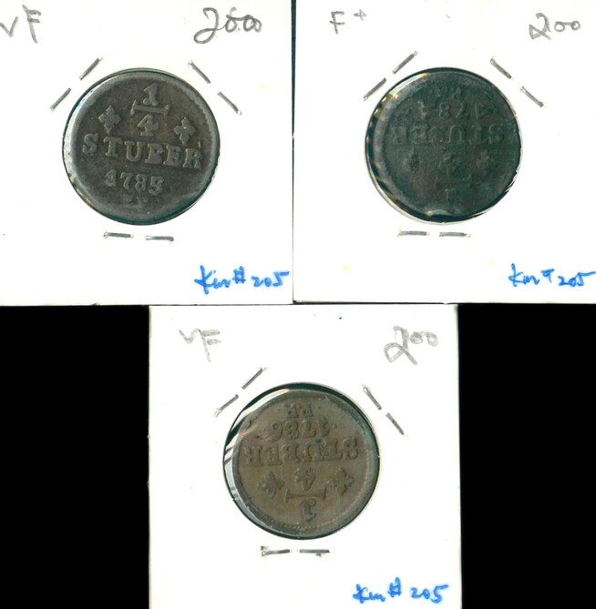 1784/85/86 德國(Jülich-Berg) ¼ Stuber VF 編號:NIL(共3枚)