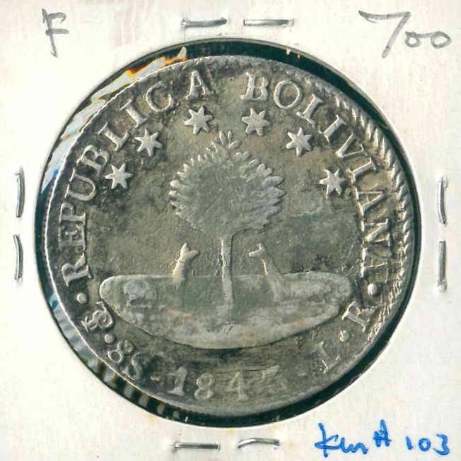 1843PTS LR 玻利維亞 8 Soles F 編號:NIL