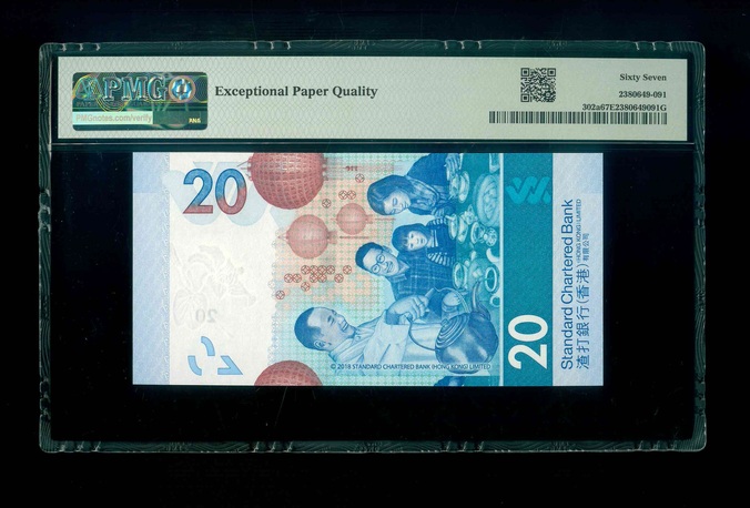 2018 香港渣打銀行 $20 PMG 67 EPQ 編號:BM797797(雷達重複號,頂級雪白)