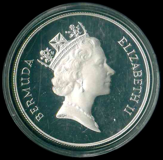 1986 百慕達銀幣 $1 (野生動物保護系列-綠蠵龜 .925) 品相如圖 編號:NIL